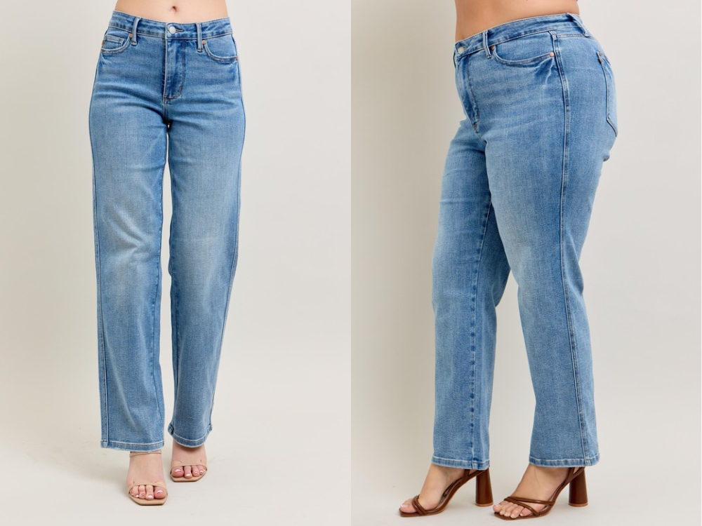 Trendy, form-fitting, nostalgic jeans, reminiscing of the popular style in the 90's