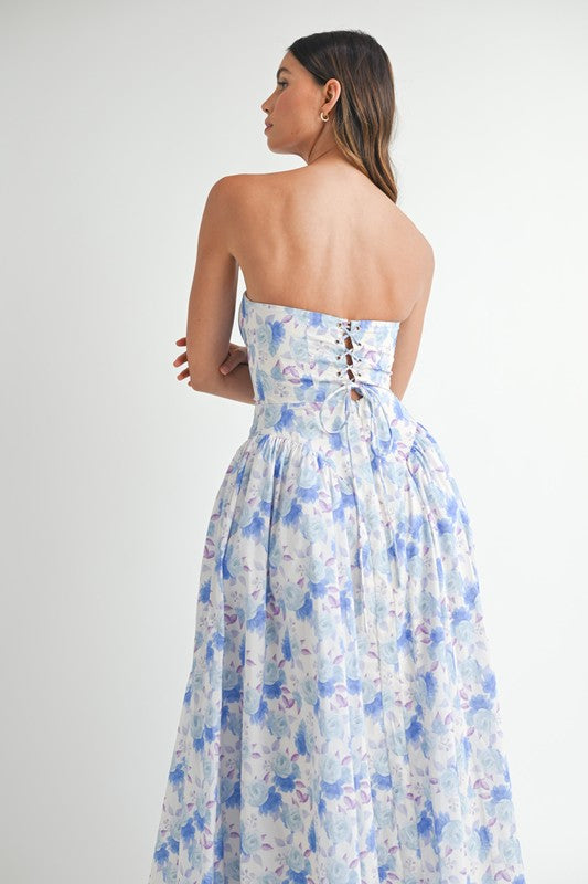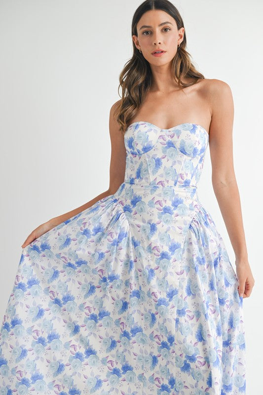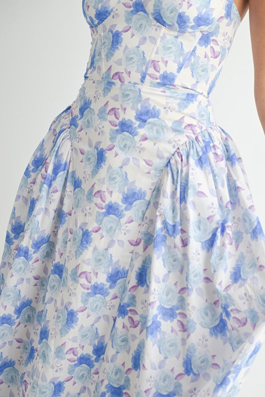 Sweetheart Neckline Floral Printed Midi Dress