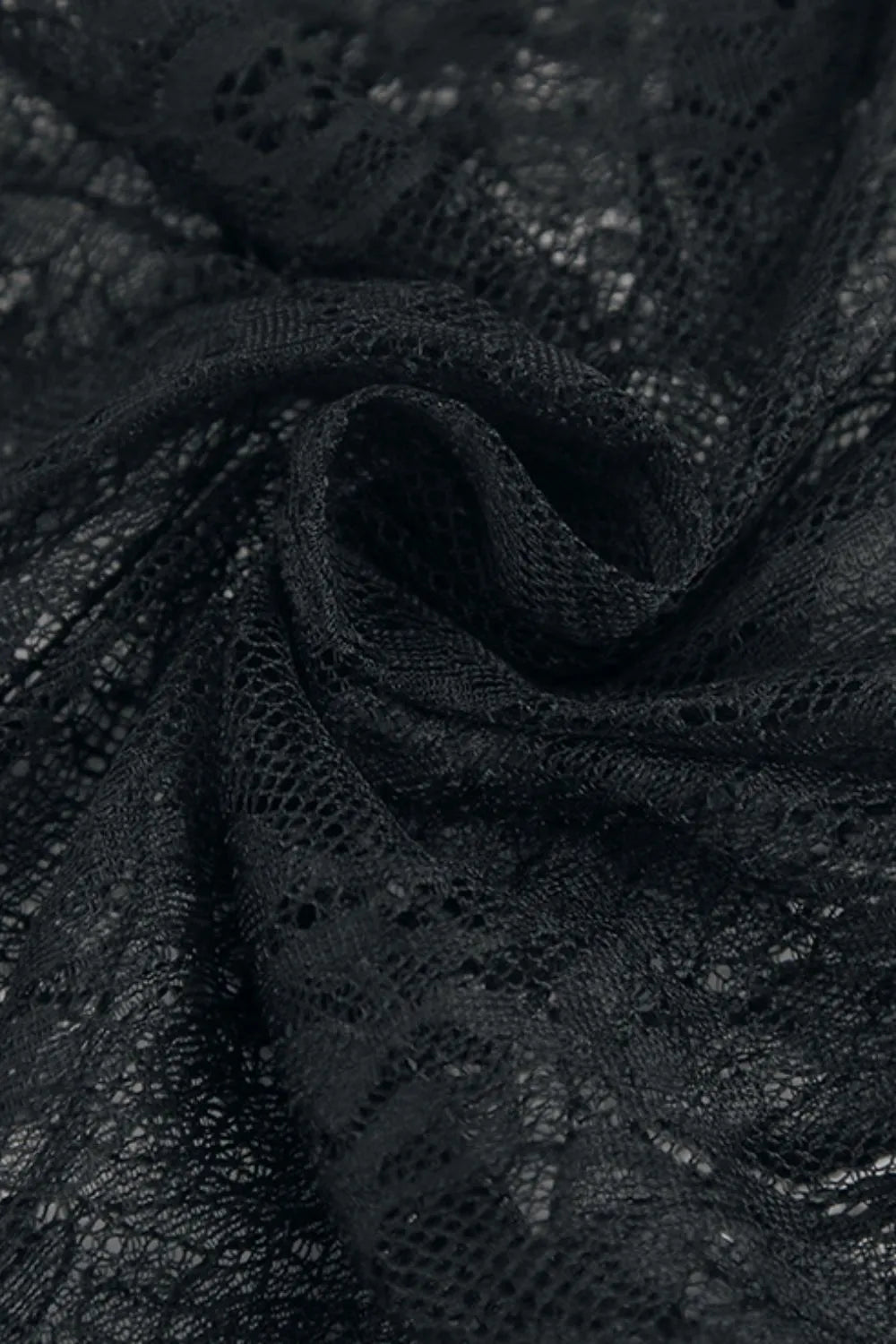 Fringe Round Neck Long Sleeve Lace Sheer Top